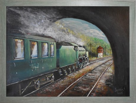 Výjezd vlaku z tunelu, akryl, 2025